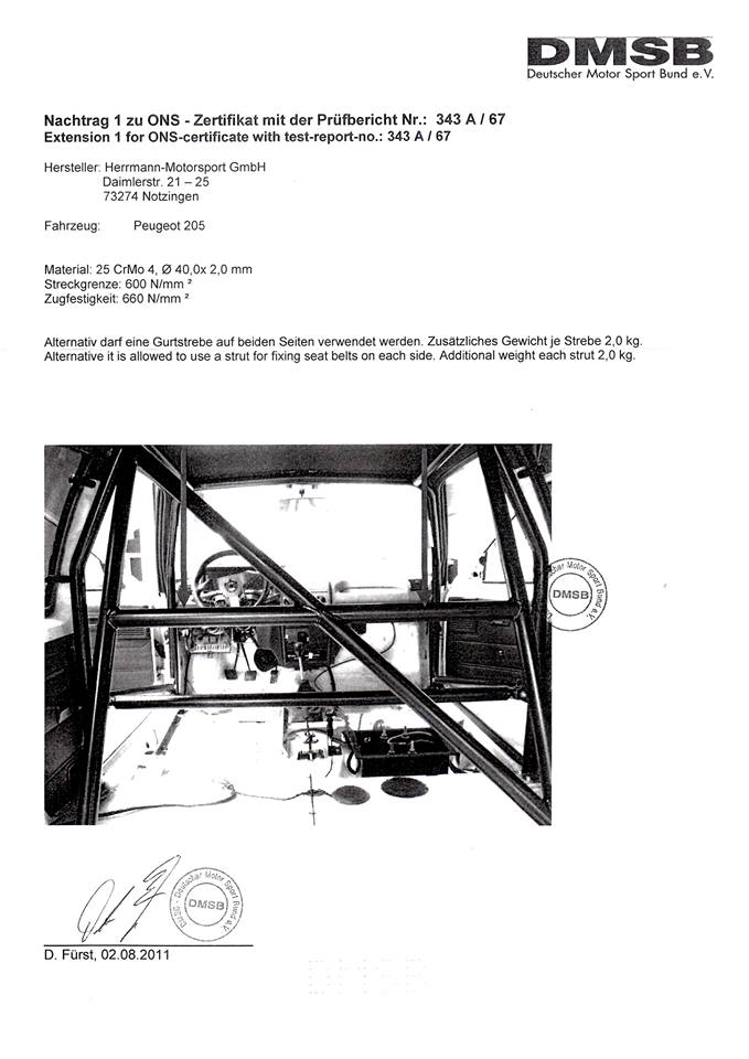ich plane derzeit, einen meiner GTI´s gemäß der Bestimmungen des DMSB umzubauen um damit an verschiedenen regionalen Motorsportveranstaltungen teilnehmen zu können (Slalom, Rallye). Von einem Bekannten habe ich das Angebot bekommen, seinen alten Käfig zu erwerben, der allerdings in einem Fahrzeug ohne Straßenzulassung verbaut war. Meine Frage ist nun, ob ich mit dem mitgelieferten Gutachten (siehe Bild) eine TÜV-Eintragung bekomme? Da für Rallyefahrzeuge eine Straßenzulassung von Nöten ist, wäre ich euch sehr dankbar, wenn ihr mir weiterhelfen könntet.