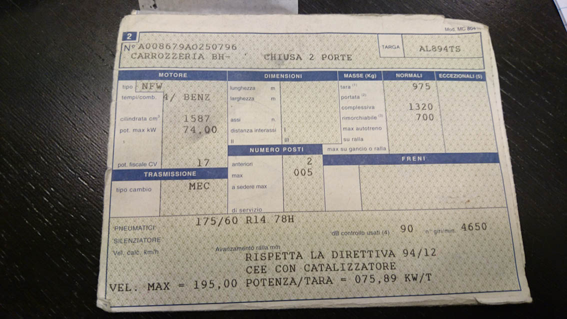 ich habe mir einen 106 Rallye 1.6 8V zugelegt (EZ 07.96 also Serie 2). Das Fahrzeug kommt ursprünglich aus Italien und irgendwie wurde damals von der Dekra etwas falsch umgetragen (von den italienschen zu den deutschen Papieren) Mat hat ihn als S 16 mit 87 kw und EURO 1 eingetragen, leider fehlen die Kopien der originalen italienschen Papiere.