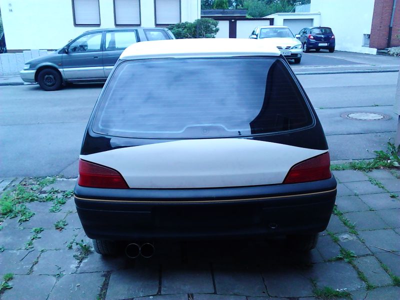 huhu wegen hobbyaufgabe verkaufe ich hier meinen 106er. VB: 850 euro der kleine wurde im dezember 1997 gebaut . ich hab ihn mit nem motorschaden gekauft vor nem knappen jahr und nen neuen einbauen lassen mit 98300 km( den alten motor kann der käufer gerne auch haben ansonsten geht der zum schrott nach verkauf)karosserie hat jetzt 167000 km runter. der wagen is vollverzinkt und hat keinerlei rost .da ich gelernter karosseriebauer bin wollte ich mir den kleinen schön zurecht machen, mitlerweile fehlt mir aber einfach die zeit dazu und er steht nur rum.Wie mann sieht hatte ich schon angefangen den wagen kommplett zu cleanen, das heist türleisten weg, dachreling weg,kotflügel 3,5cm rausgezogen, kofferaumdeckel kommplet clean und öffnet elektrich.gespachtelt werden müssten nur noch die kotflügel, die hab ich aber erstmal mit grundiert damit nix rostet . innen macht der kleine einen sehr geflegten eindruck, bremsbelege hinten neu sportauspuff drunter( originalen gibts mit dazu is neu) scheiben rundum getönnt hinten in einem stück. zentralverriegelung nachgerüstet mit funk und blinkeransteuerung schlüssel im audi und vw lock. ölwechsel wurde mit motortauch gemacht getriebeöl auch und wasser mit frostschutz natürlich auch, luftfilter neu zahnrimmen und keilriemen wurden bei 88000 gewechselt, schwarze rückleuchten gibts auch dazu findet der tü+v aber nicht so toll. tüv hat er noch bis märz 2013.radio lass ich auch drinne hat in den türen stärkere hilfonic lautsprecher montiert und steht auf guten winterreifen. bei fragen oder fals ihr noch bilder sehen wollt einfach anschreiben hab alle umbauten dokumentiert nichts davon muss eingetragen werden auser der auspuff da gibts aber wie gesagt den originalen dazu also anmelden reinsetzen und losfahren fährt sich supi und ist mit seinem 1 liter motor extrem sparsam schafft dafür aber auch nur max 160 KMH MAAAAAAAAAXIMAL xd. hab sogar noch die letzten 2 tüv berichte gibts alles dazu.
