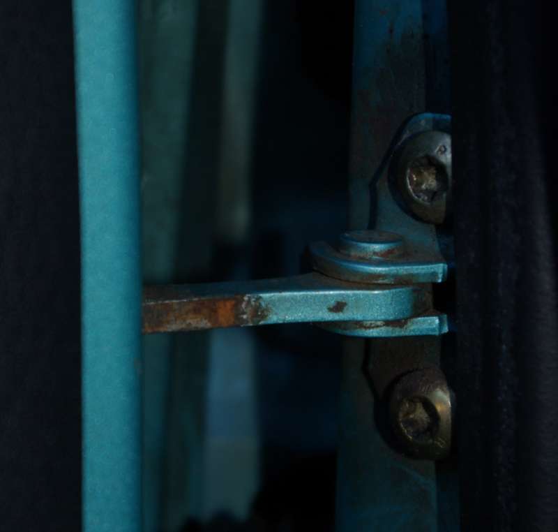 Die Aufnahme für das Fangband in den Türen. Also wo dieser Metallarm mit den Nocken drin läuft un die Türe bei halb offen oder ganz offen festhält und den Gesamtausschlag der Türe begrenzt. Bilder kann ich schlecht machen, da der freundliche Vorbesitzer das Teil ausgebaut hat. Müsste mit zwei robusten Schrauben jeweils einmal an der A-Säule und dann eben in der Tür befestigt sein.