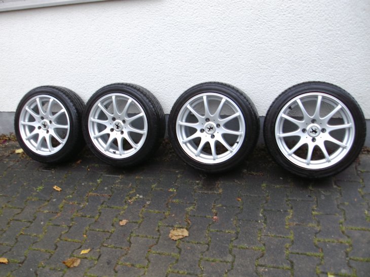 An der Hinterachse hatte ich Spurverbreiterungen mit 10 mm pro Seite montiert , und vorne ist mein Cabrio ca 50 mm tiefer - die Räder passten ohne Anpassung unter die Karosserie und haben nicht gestreift.Radschrauben und Gutachten sind natürlich dabei.