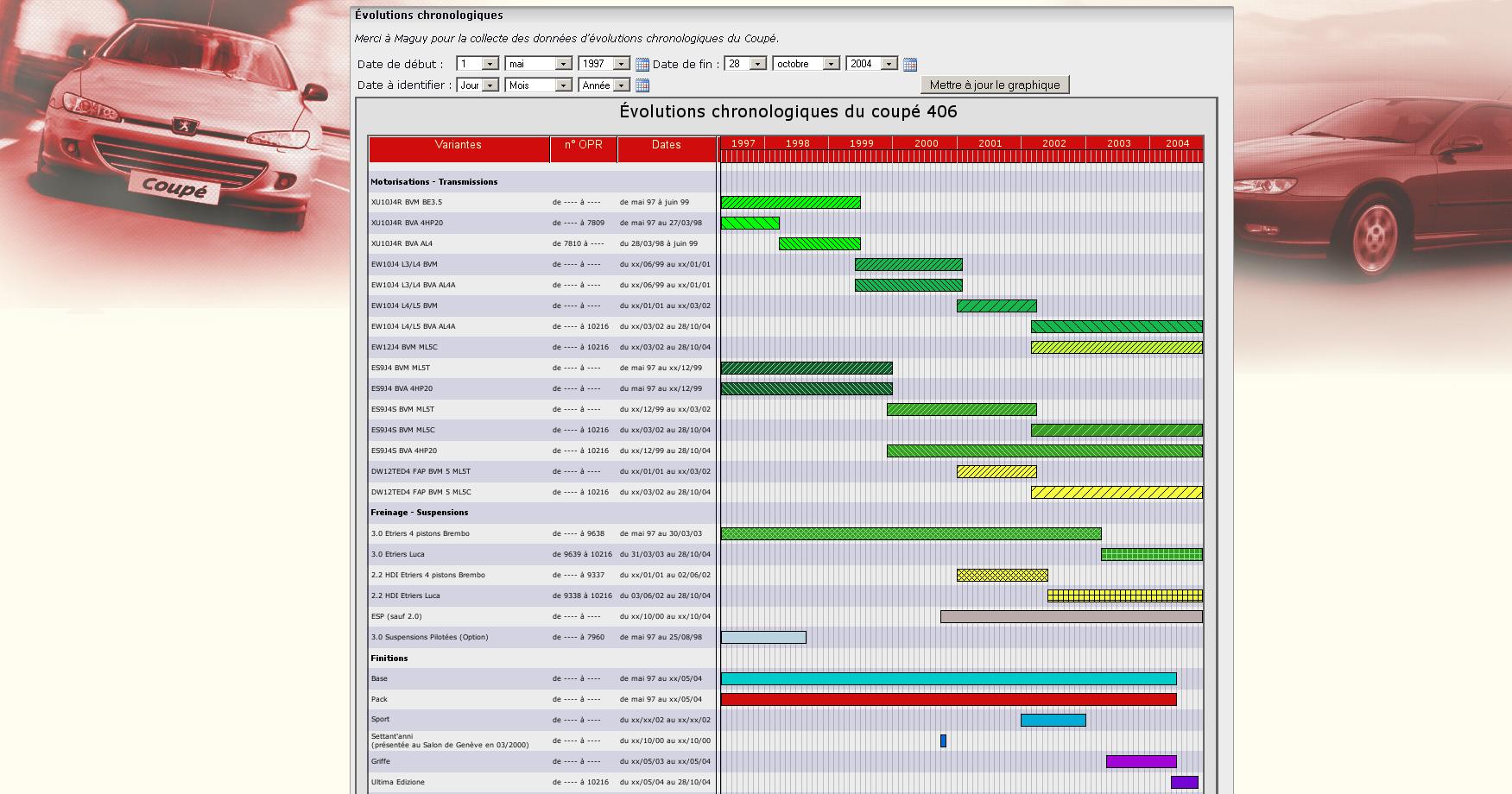 darf ich Dich einmal um die Quelle der Verkaufszahlen des 406er coupes fragen ? Kann ich das irgendwo nachlesen, welches coupe mit welcher Motorisierung und welcher Lackierung wie oft produziert wurde ? Ganz ohne tieferen Sinn diese Frage, einfach nur aus reiner Neugierde.