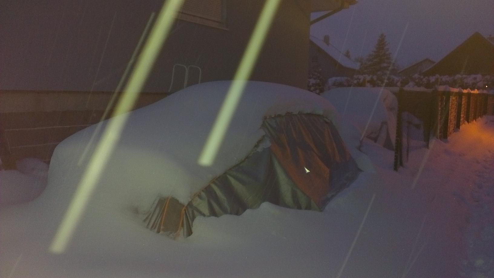 ......bin nicht fertsch geworden, hatt dan angefangen zu tauen, hinterm gebäude ist ein Stall (überdacht und geschützt) da sollte der "Schinken" übern Winter rein(weil abgemeldet und Löwe) naja ich dachte der Winter ist da, und dann wieder +grade