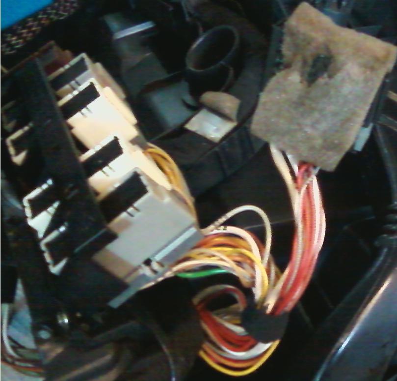 Der große ist oberhalb der Relais (mit Schaumstoff umwickelt), der kleine oberhalb der Pedale (einzelner Draht).