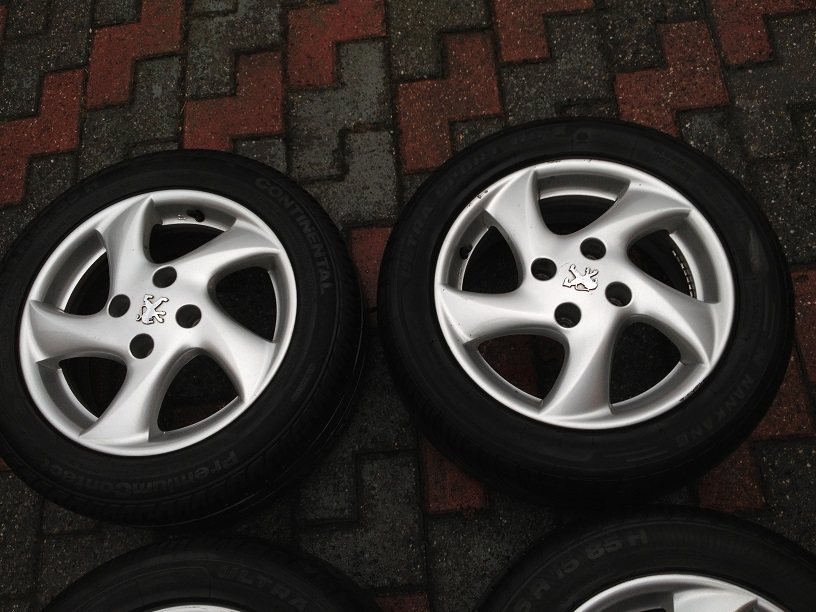 ich biete hier 4x die 15" Originalfelgen des 206ers (BJ 2003) zum Verkauf an. Sie sind gebraucht, haben allerdings nur eine Laufleistung von etwa 25.000 Km und sind in einem dementsprechend gutem Zustand. Eine vierfache Bereifung ist aufgezogen und wird mitverkauft, sollte trotz einer guten Profiltiefe dennoch gewechselt werden (Herstellungsdatum bei zwei Reifen ist -1906-, bei den beiden anderen -4202-).