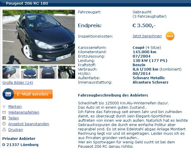 Aber alle 206er RC die ich in der Preisklasse angeschaut habe, hatten immer ein großes ABER.