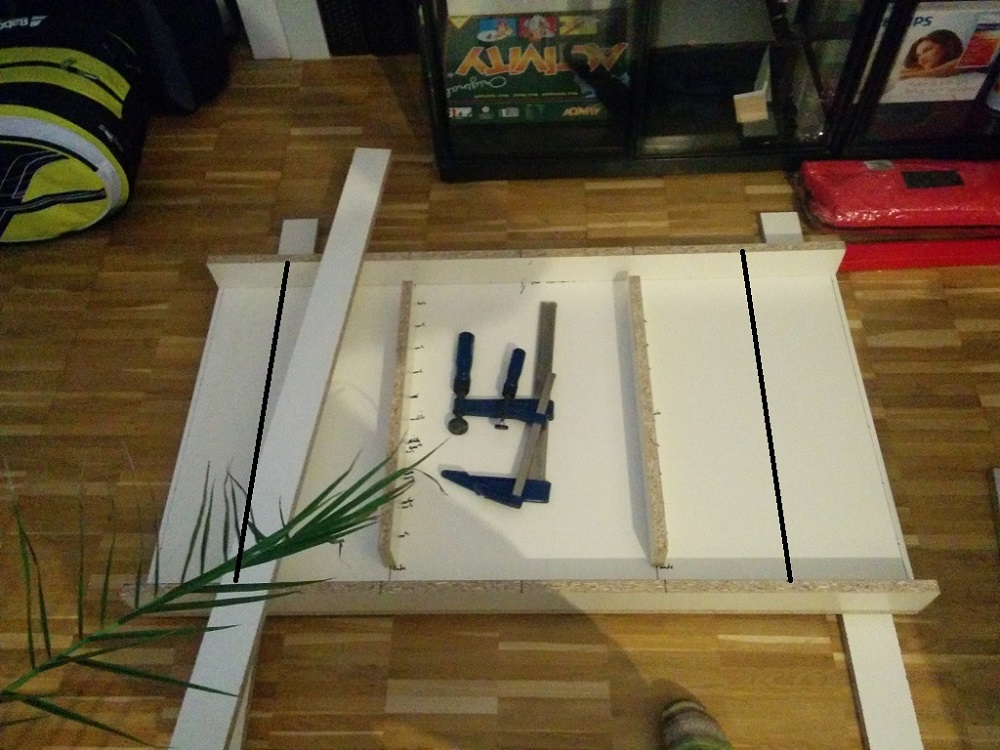 Am 2ten Bild sieht man die 2 warzen Linien. Dort kommen weitere Stege hinein damit ich 3 Fächer habe.