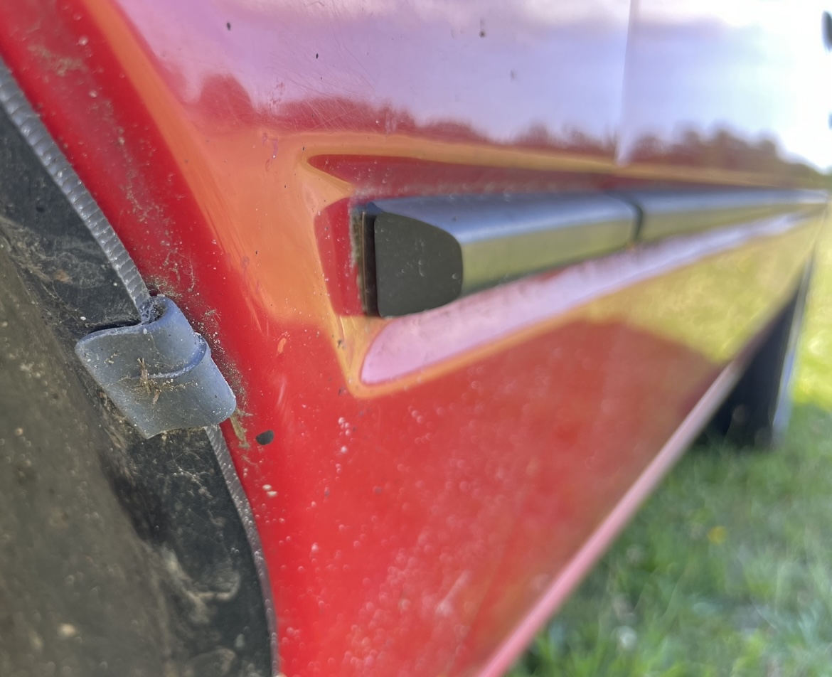 Dieses Blechteil ist hauptsächlich mitverantwortlich dafür, dass die meisten Kotis beim Abbau böse Knicke bekommen, denn das ist am Aussenrand von oben bis unten mit Dichtmasse mit dem Koti verklebt und geht bis oben in die Kotflügelrundung rein.:-)