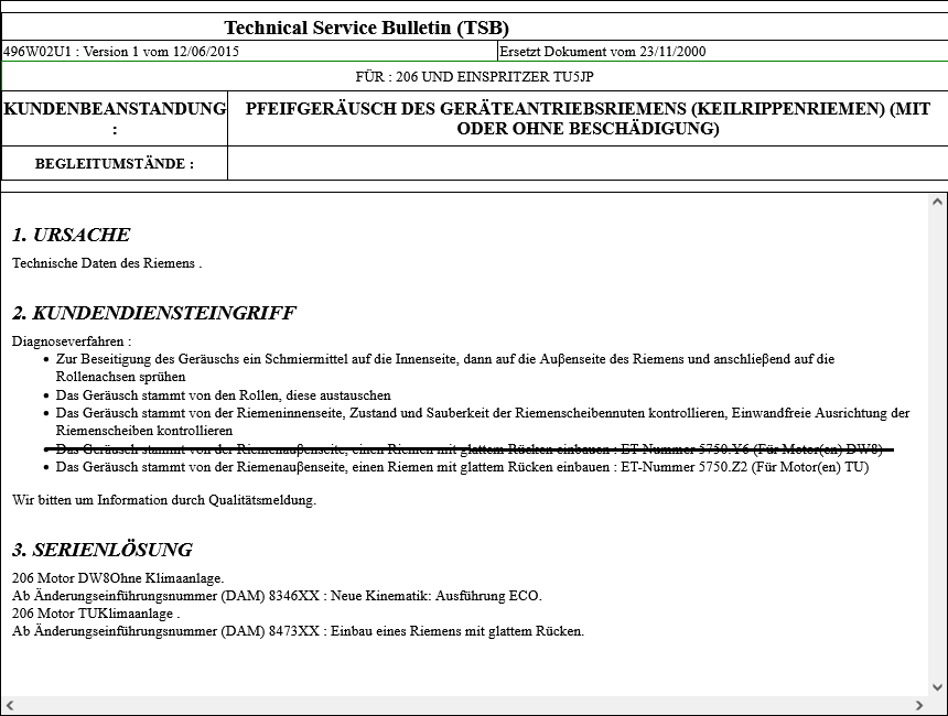 Ich fuhr, nachdem das Auto zugelassen war, 2 Stunden mit dem Auto (Waschen, tanken, einkaufen usw.) Als ich dann in eine Parklücke fahren wollte, den 1. Gang einlegte, fing es plötzlich aus dem Motoraum an zu "zwitschern" es war kein quietschen, hab die Motorhaube aufgemacht, konnte aber das Geräusch nicht genau lokaliesieren. Ich erzählte es meinem Schwager, der ein bißchen ahnung von Autos hat, er meinte es wäre vielleicht die Spannrolle, da mir der Verkäufer sagte, er hätte diese vor ein paar Wochen, den Riemen und Spannrolle gewechselt. Mein Schwager meinte, ich solle mal ein bißchen WD40 auf die Schraube der Spannrolle sprühen, Ich fuhr nach hause, was mit dem Auto nur 5 Minuten dauert, da bemerkte ich, als ich auf meinen Parklplatz fuhr, ein leises klackern, das zu dem zwitschern hinzugekommen ist. Ich habe dann auf die Schraube der Spannrolle ein bißchen WD40 gesprüht, ich ließ den Motor ein bißchen laufen, es "zwitscherte" aber munter weiter. Ich rief meinen Schwager an, er sagte mir, ich solle mal ein bißchen warten, bis das WD40 seinen Weg gefunden hat, das Klappern konnte er sich aber nicht erklären.
