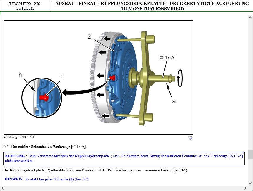 ( Kupplung muss vor Anzug an das Zweimassenschwungrad vorgespannt werden !!! )