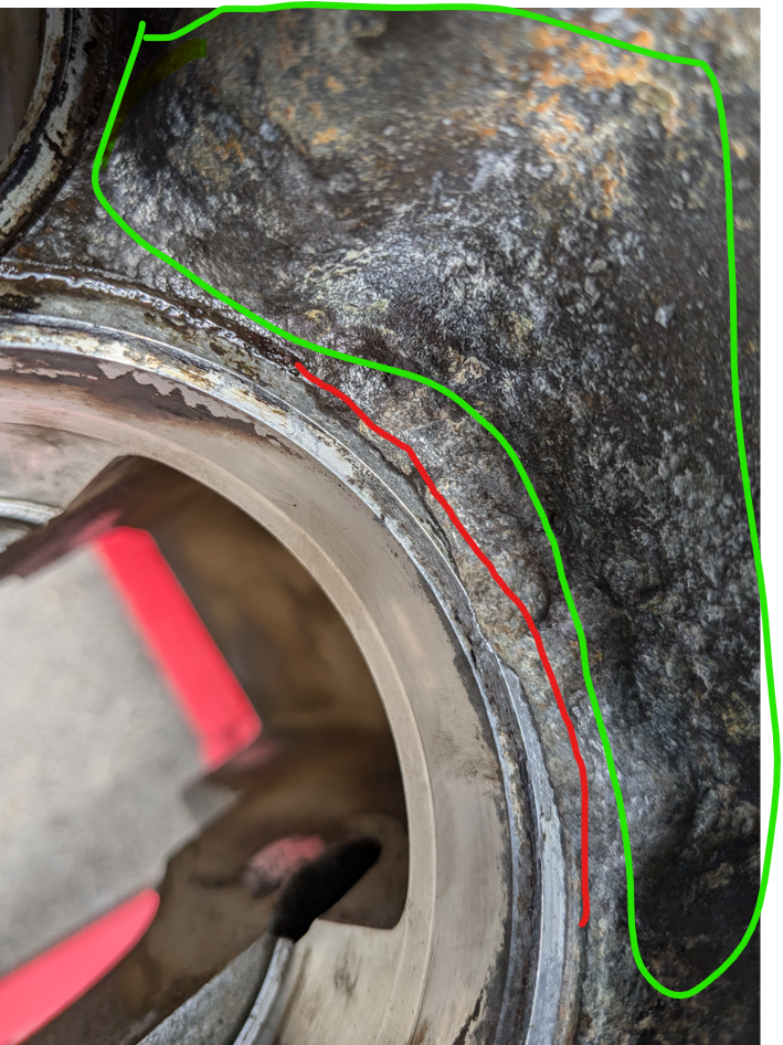 Der wird ohne Aufarbeitung im Betrieb dann grösser - da würde ich versuchen, ob man nicht mit Knetmetall die Form wieder glatt bekommt. Solche Taschen wirken sonst schadenerweiternd, weil dort Verwirbelungen entstehen. Man könnte da auch aufschweissen, dann ist aber ein Verzug ziemlich wahrscheinlich. Die Frage ist, ob so ein Kaltmetall die Belastung auf Dauer aushält. Wir haben schon mal nen Motorblock mit sowas geflickt, das ging richtig gut und hat gehalten.